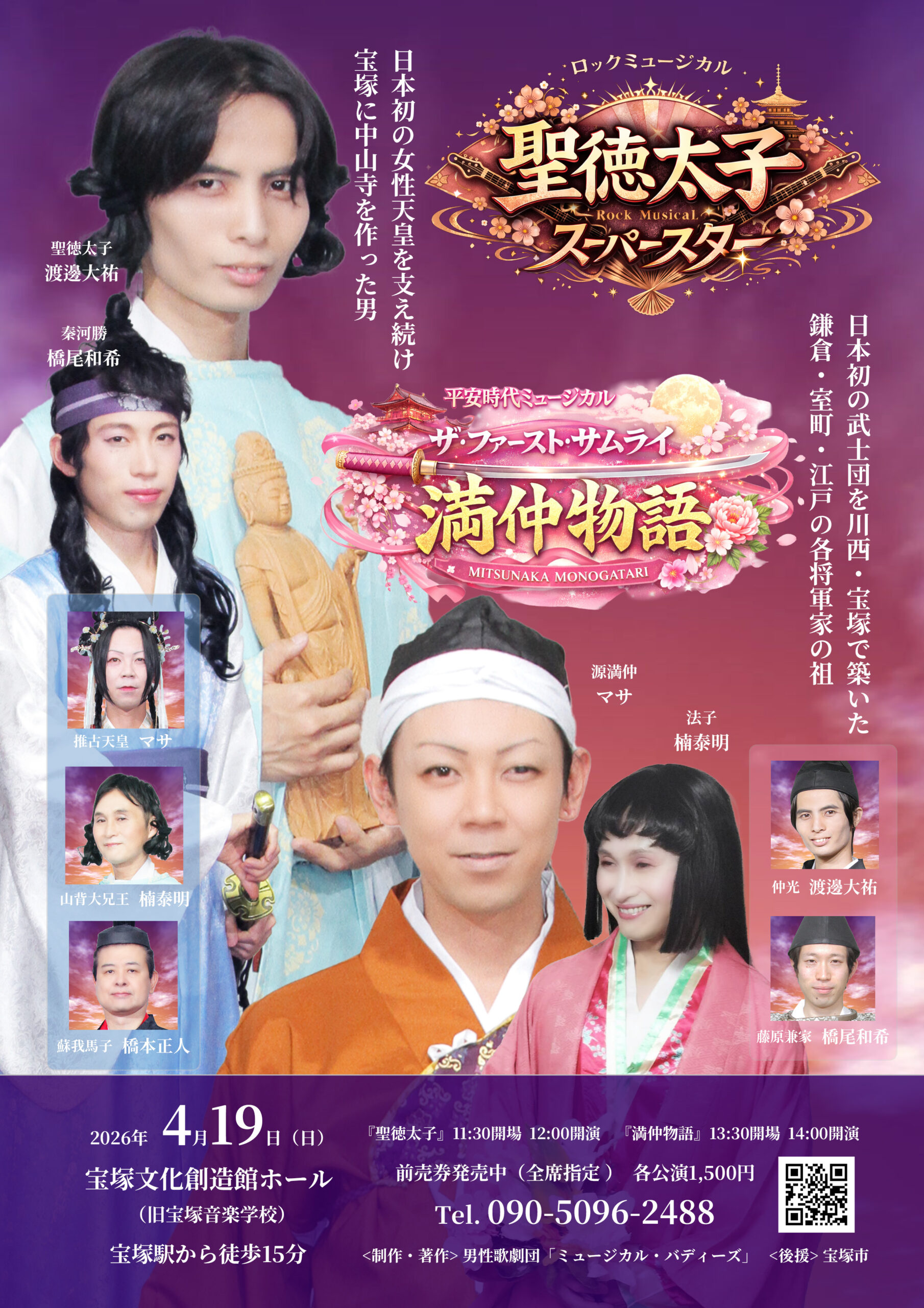ロックミュージカル『聖徳太子 スーパースター』と、平安時代ミュージカル『ザ・ファースト・サムライ 満仲物語』を、4月19日に上演