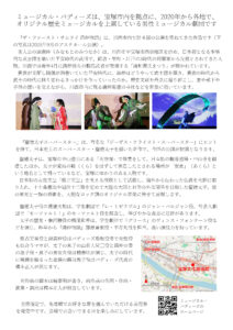 2026年4月19日(日)に兵庫県宝塚市内の宝塚文化創造館(旧宝塚音楽学校)ホールで、社会人男性歌劇団「ミュージカル・バディーズ」が初演するのロックミュージカル『聖徳太子スーパースター』で使用する予定の楽曲「旅人の歌」を […]